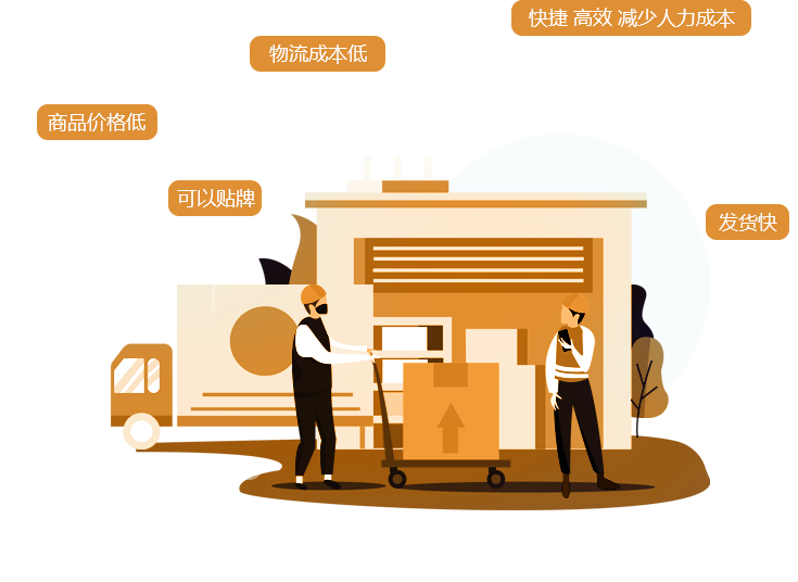商品价格低 · 物流成本低 · 减少人力成本